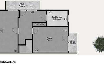 Az épület 2 lakószintből és egy garázsszintből (utcaszint) áll.