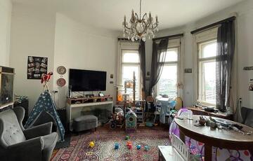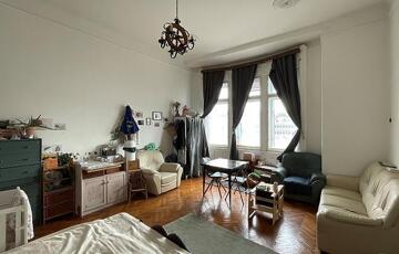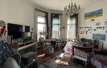 Krisztinavárosban, karbantartott társasházban, magas emeleti, napos, kelet-i és dél-i fekvésű, nagypolgári lakás.