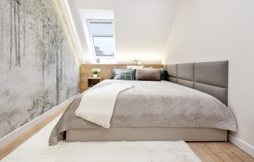 • minden bútor, textil és berendezés új, garanciális, a vételár része