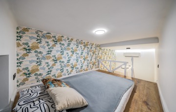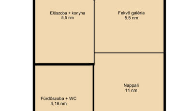 Az eladásra kínált lakás 21 nm alapterületű, amelyet egy 5 nm-es fekvőgaléria tesz még praktikusabbá és kényelmesebbé. A galérián új, 140 cm széles matrac biztosít pihentető alvást.