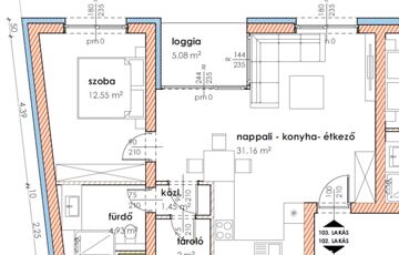 A 1 db amerikai konyhás nappalival, 1db hálószobával, 1 db fürdőszobával, közlekedővel, loggiával rendelkezik.