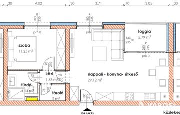 Makón, presztizs lokációval rendelkező - Makói fürdőtől 60 méterre, a Napfény Residenceben - a Páva utcában , Eladó egy most induló, tégla építésű, ELSŐ EMELETI , 53,93 nm-es élettérrel rendelkező, amerikai konyha nappali plusz egy szobás, loggiás lakás (104.lakás).