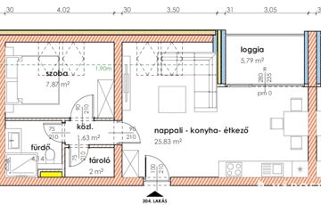 A 1 db amerikai konyhás nappalival, 1db hálószobával, 1 db fürdőszobával, közlekedővel, loggiával rendelkezik.
