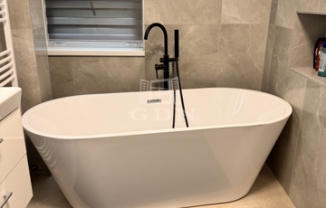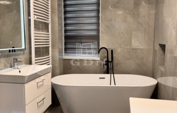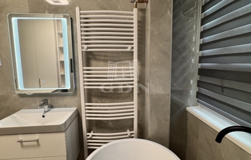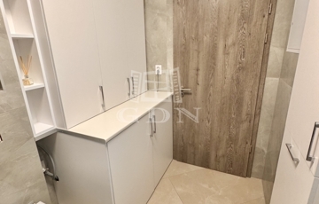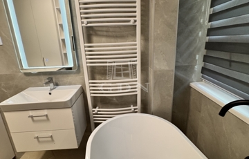 A korábbi konyha helyén egy teljes értékű, modern fürdőszoba kapott helyet, emellett két külön tárolóhelyiség is rendelkezésre áll, ami ritka és rendkívül praktikus.