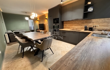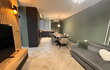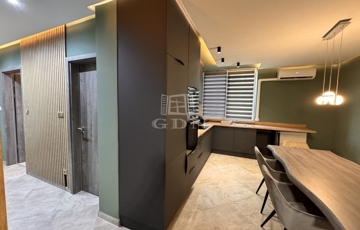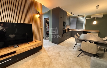 A lakás belső elrendezése teljesen újragondolt, így egy tágas amerikai konyhás nappali, egy külön nyíló hálószoba, valamint egy gardróbszoba került kialakításra – amely igény szerint kisszobává is alakítható.