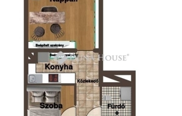 A lakás elosztása praktikus: tágas nappali, különálló háló (fél szoba), valamint fürdő+WC egyben található benne. Fűtéséről gázkonvektor gondoskodik.
