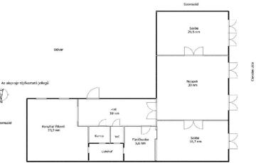 Jelenleg 3 szoba + nagy, étkezővel egybenyitott konyha elrendezésű, jJÓ állapotú ingatlan.