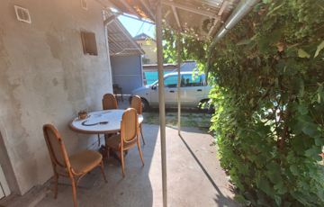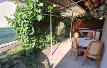 A lakás bejárata előtt van egy kis fedett terasz, a konyha előtt pedig egy nagy - szintén fedett - terasz. Körülötte néhány tőke szőlő teszi intimmé a teraszt és a házat.