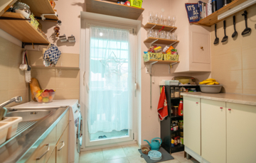 Jó méretű , kényelmes konyhája van,- közvetlen terasz-kapcsolattal.