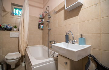 Fürdőszoba kádas, és wc is van benne, illetve egy külön vendég-wc is helyet kapott.