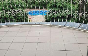 The huge windows of the American kitchen-dining room let in sunlight, and the balcony offers a magnificent view of the inner garden and the pool. The electric fireplace creates a pleasant atmosphere. The windows are equipped with shutters. The apartment was completely renovated in 2006.