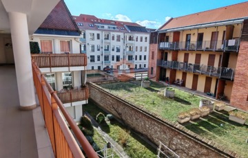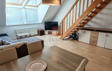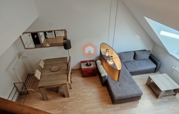 Pécs belvárosának központi részén kiadó egy 70 nm-es, belső kétszintes klímás lakás, egy 2 emeletes tégla társasház 2. emeletén.
