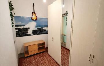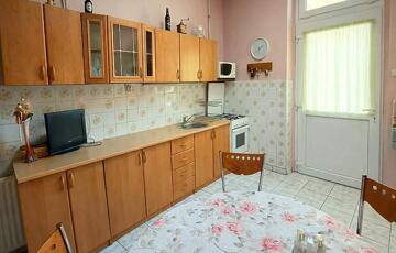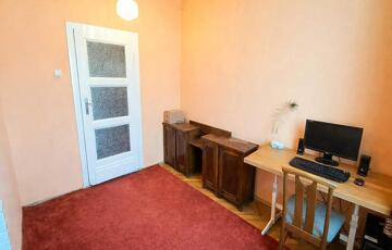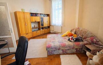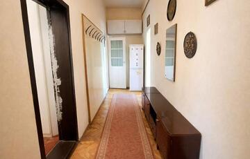 A lakásban konyha, 2 + 2 félszoba, étkezős konyha, fürdőszoba, közlekedő és gardróbszoba található. A víz- és a villanyhálózat felújítandó, esztétikailag közepes állapotú. A nyílászárók részben cserélve lettek műanyag hő- és hangszigetelt ablakokra és bejárati ajtóra. A konyhában és a fürdőszobában hidegburkolatok, a szobákban faparketta található. A fűtésről gázcirkó gondoskodik és lapradiátorok adják le a hőt. A konyhabútor a vételár részét, a többi berendezés megegyezés tárgyát képezi.