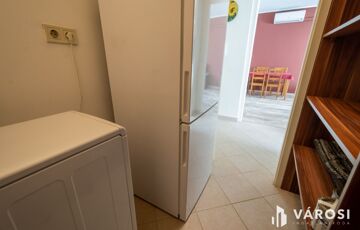 - mosógép és hűtő, a különálló 3 m2-es kamrában található