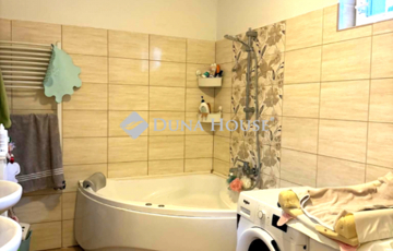 A fürdőszobában jelenleg sarokkád van, két mosdó, mosó és szárítógép a tágas térben bőven elfér, esetlegen még szauna is elfér ebben a helyiségben.