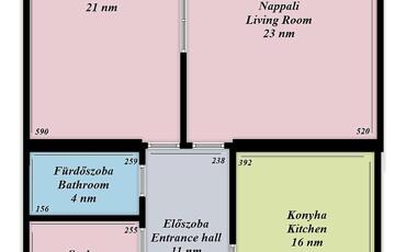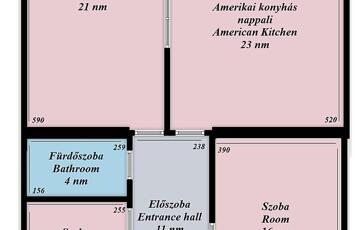 - Elosztás: jelenleg 2,5 különnyíló szoba, konyha, fürdő, külön WC