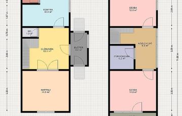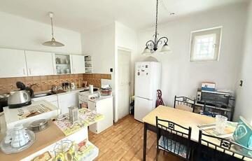 Az ingatlan praktikus elrendezésű a földszinten tágas, világos nappali, külön konyha–étkező és spejz található.
