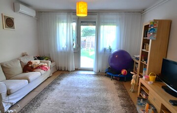 A lakáshoz tartozó kert szépen parkosított, kisgyermekeseknek, idősebbeknek ideális választás lehet. A teraszon intim környezetben pihenhetünk, fogadhatjuk barátainkat, vagy sütögethetünk kedvünkre. Különösebb karbantartásra nincs szükség.