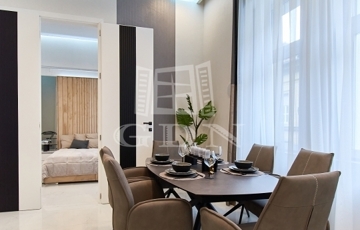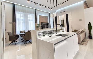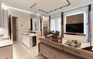 V. kerületben, az Aranykéz utcában, kiadó egy 121 m2-es, 3 szobás (2 háló + amerikai konyhás nappali), ERKÉLYES, dupla komfortos, egyedien és PRÉMIUM minőségben felújított EXKLUZÍV, LUXUS lakás.