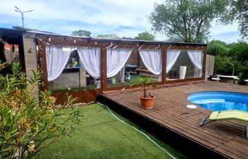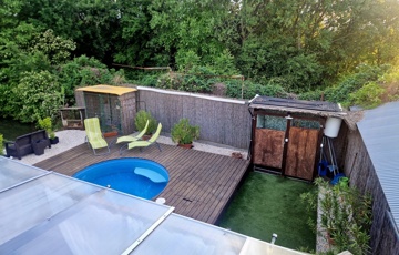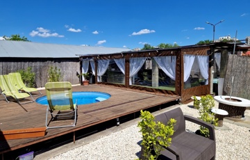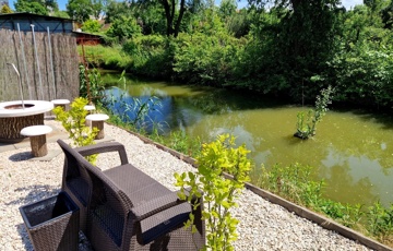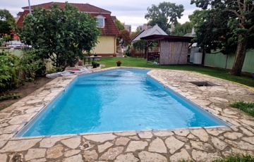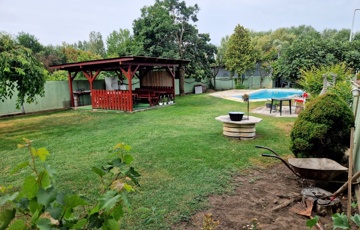 Továbbá az ingatlan területén 2 különálló, gondozott kert is található ahol: hangulatos filagória és medence wellness részleggel biztosítja a pihenést, egy természetes halastó: 20m × 10 méteres vízfelülettel várja a kikapcsolódásra vágyókat.