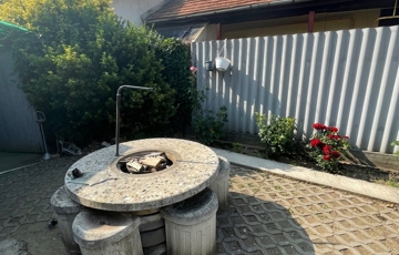 A 140 m²-es, gondozott telek kis fenntartási igényű, mégis minden megtalálható rajta, ami a kényelmes mindennapokhoz szükséges.