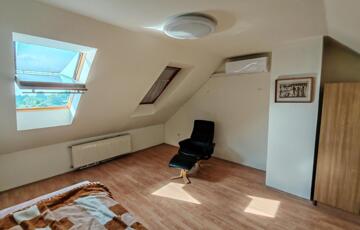 felső szint: előtér, 2 hálószoba, tágas fürdőszoba káddal és WC-vel