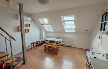 alsó szint: előtér, nappali–étkező–konyha egy légtérben, zuhanyzós fürdőszoba WC-vel