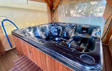 Az alsó és felső szint együttes hasznos alapterülete 90 m², amely 2 szobát, konyhát és fürdőszobát foglal magában. A házhoz egy 18 m²-es terasz is tartozik, valamint egy 6 személyes jakuzzi, amely fedett filagóriában kapott helyet. A jakuzzi teljes körűen szervizelt, felújított gépészettel, a vételár részét képezi.