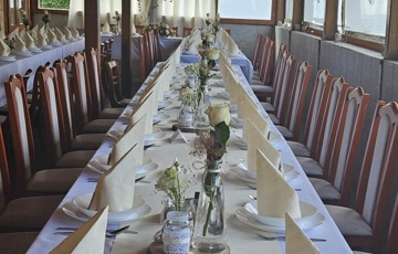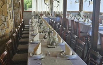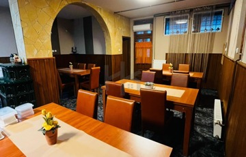 - az alsó szinten, ( 98 m2 ) jelenleg a vendégtér, konyha, előkészítők , mosdók és egy nagy terem van kialakítva ( ami egybenyitható a fedett és zárt terasszal )