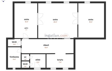 • Elosztás: nappali + 2 hálószoba, étkező–konyha