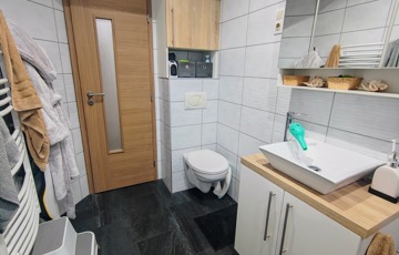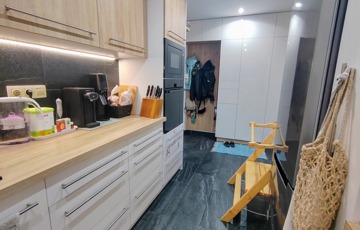 A beépített szekrénnyel ellátott előszoba , a modern konyha , a klímatizált hálószoba , a szobából nyíló kialakított gardrób melyek mind azt sugallják, hogy a jelenlegi tulajdonos a kényelemre törekedett.