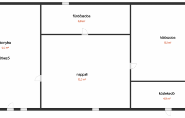 Két bejárat: Az egyik bejárat a konyhához kapcsolódik, amely a jövőben terasszal bővíthető. A terasz jelenleg még nincs megépítve, de a kijárata már kialakított.