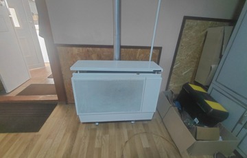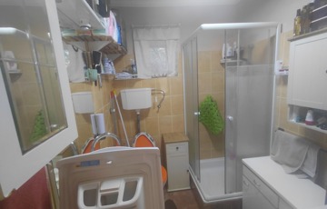 Eredeti hajópadló az egyik szobában, új PVC és járólap burkolatok (2025-ben cserélve)
