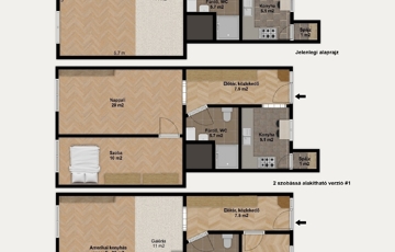 A közös költség 19000 Ft. A lakás előtt lévő, szomszéd ingatlannal közös terület külön is zárható. A gépesített konyha, a beépített szekrények és a jelenleg ott lévő, képeken látható bútorok az ár részét képezik. A konyhából egy 1 m2-es spájz is nyílik, ugyancsak beszekrényezve és használatra készen, ezen rész átalakítható szobává, ahogy a nappali egyik része is könnyen leválasztható, ezáltal egy 2 szobás ingatlan könnyen kialakítható.