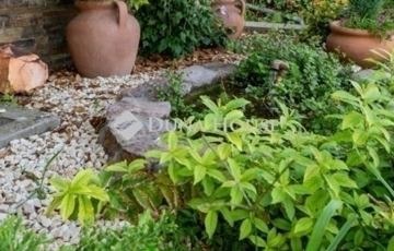 Ezenkívül egy külön 55 m²-es lakást, egy 2 beállásos garázst, tárolókat, valamint egy több mint 100 m²-es, természetes kőburkolatú terasszal, pergolával ,parkosított kerttel, halas tóval .