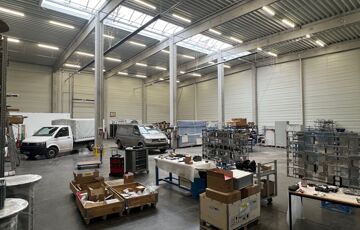 Heating of the production and warehouse area is ensured by gas-powered radiant heaters, while the office and social areas are heated by a air-to-air heat pump system (air conditioning).