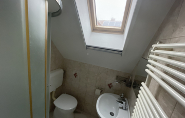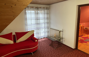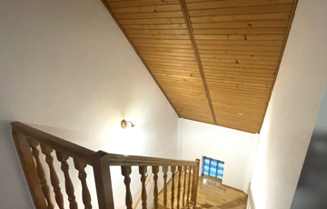 Az emeleten pedig négy hálószoba (10,8 m2, 15,84 m, és két 19,61 m2 méretűek), zuhanyzós fürdőszoba + WC, egy 20 m2-es közösségi tér kapott helyet, valamint két erkély is. Az egyikről balatoni részpanoráma is látható. A tetőtér kényelmes belmagassága miatt ezek a szobák is jól berendezhetőek.