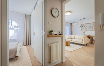 A lakás dél-keleti tájolásának köszönhetően kifejezetten napfényes, a kilátás pedig a csendes belső kertre nyílik, így a nyugalom garantált. A 3 méteres belmagasság tovább növeli a térérzetet és az eleganciát.