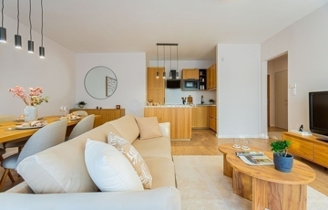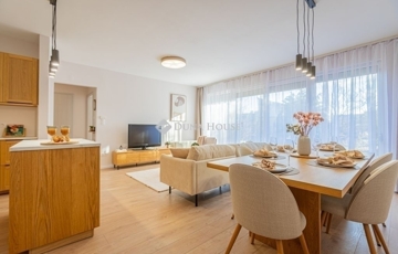 Ez az 57 m²-es lakás tökéletes elosztással vár: a tágas, több mint 27 m²-es nappali és a külön nyíló hálószoba kényelmes életteret biztosít. Az ingatlan igazi különlegessége azonban a hatalmas, 20 m²-es privát terasz és a hozzá tartozó kert, amely tavasztól őszig egy plusz „szobaként” funkcionál.