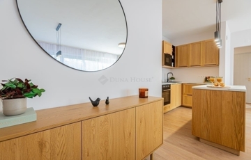 Az állapot makulátlan: a 2025-ben történt teljes körű felújítás során mindent kicseréltek. A modern, gépesített konyha és az igényes burkolatok azonnal érezhető minőséget sugároznak – ide tényleg csak költöznöd kell.