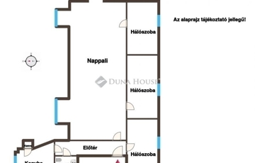 A beosztás praktikus: a három háló külön nyílik, a terek világosak. Bár az ingatlan lakható állapotú, kiváló alap arra, hogy saját stílusodra formáld.