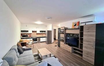 A lakás nagyon jó elosztású, világos, csendes. Elektromos redőnyökkel és hűtő-fűtő klímával ellátott. Ide csak költözni kell, hiszen a lakás maga teljesen bútorozott, gépesített, mely a bérlők kényelmét szolgálja (konyhabútor gépekkel/ sütő, indukciós főzőlap, mosogatógép, hűtőszekrény, nappalibútor/ szekrénysor és kanapé, hálószobában teljes beépített szekrénysor, ágy, fürdőben pedig mosógép, pipere szekrény).
