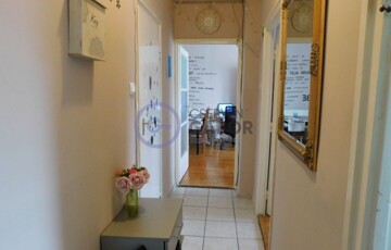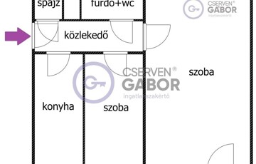 Az ingatlan 43 m2-es lakóterülettel rendelkezik, ami magába foglal egy kimondottan tágas nagyszobát, egy külön bejáratú, cirka 6m2-es félszobát, vele szemközt a fürdőt, ami együtt van a WC-vel, továbbá a bejárattól balra a konyhát és jobbra a spájzot.