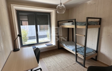Levegős hőszivattyú (VRV splitklíma), 2,5 kW napelem rendszer, elektromos redőny, szúnyogháló, beépített bútorok, homlokzati díszvilágítás.