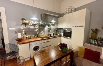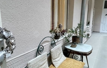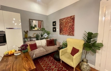 Az ingatlan egy frissen felújított belső udvaros ház 1. emeletén található. Bár a lakás a körfolyosóról nyílik, elhelyezkedése miatt nincs előtte átmenő forgalom, így a bejárat előtti rész egy privát, paddal és asztallal berendezett teraszként funkcionál – tökéletes helyszín a reggeli kávéhoz.