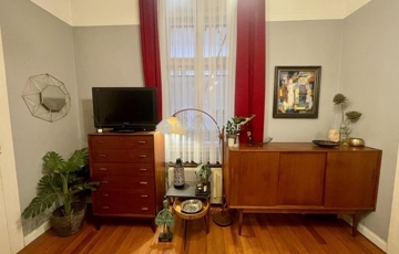 A lakás 2018-ban teljes körű felújításon esett át, melynek során az eredeti elrendezést újragondolva egy nappali + 2 hálószobás otthont alkottak: