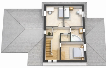 - Emelet: közlekedő, 3 különnyíló hálószoba, gardrób, fürdőszoba, külön WC.