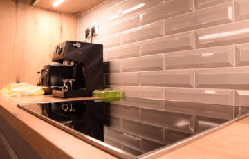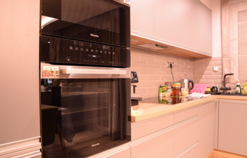 A modern, letisztult amerikai konyha teljesen gépesített, újszerű Miele készülékekkel, ahol az együtt töltött családi pillanatok természetesen születnek meg.