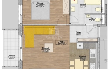 2. emelet – 47 m2 - 2 szoba – 5 m2 erkély – ELÉRHETŐ