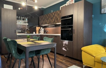 Nappali-konyha-étkező - Beépített, gépesített egyedi konyhabútorral,